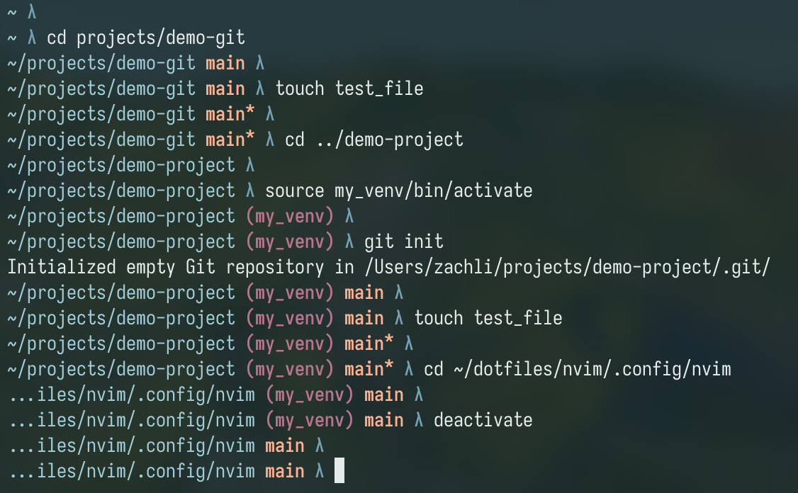An elegant zsh prompt extended from the original lambda.zsh-theme prompt. Retains the simplicity of the original theme with improved color contrast, virtual-env prompt support, and trimmed long paths. Designed to be effective in general, and also with small terminal windows in mind.
